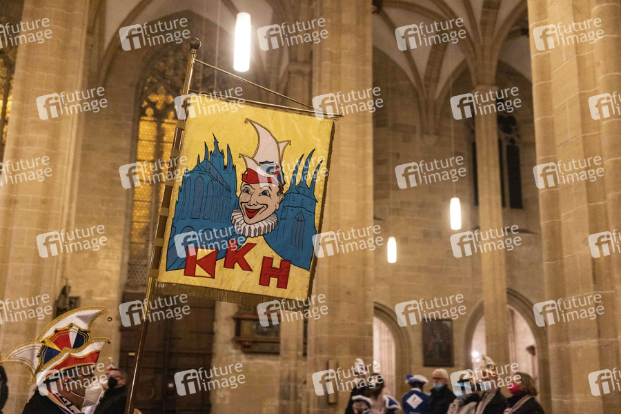 Der karnevalistische Gottesdienst fand unter 3G-Bestimmungen in der Severikirche auf dem Erfurter Domberg statt. Pfarrer Michael Neudert, gab den Karnevalisten, einschließlich den Prinzenpaaren Christian II. und Verena II. und den Kindern Luca I. und Noelanie I. den Segen für die anstehende Kampagne. Erfurt, 16.01.2022