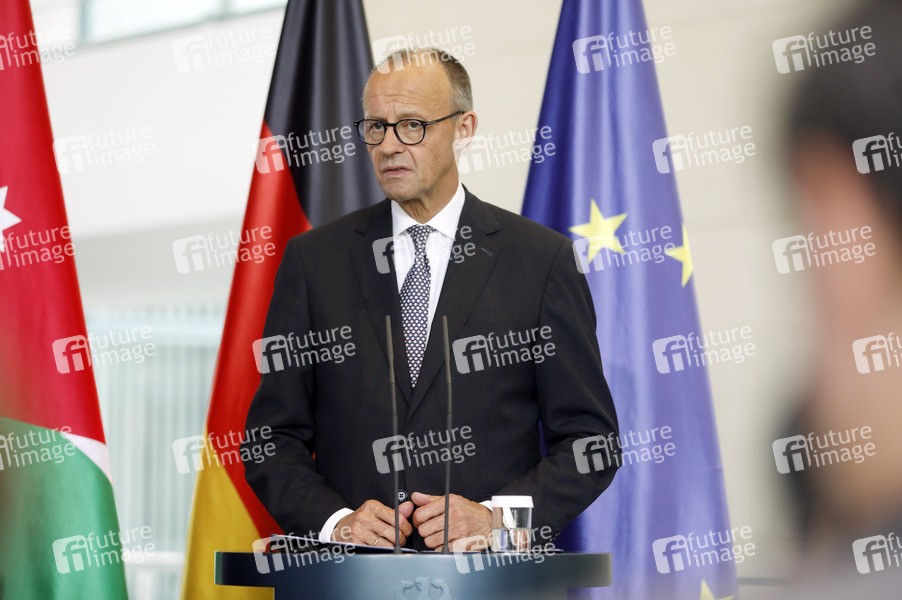 Friedrich Merz beim Empfang des Königs von Jordanien mit militärischen Ehren zu einem gemeinsamen Gespräch mit anschließendem Pressestatement im Bundeskanzleramt. Berlin, 29.07.2025