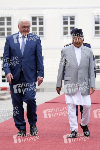 Frank-Walter Steinmeier und Ram Chandra Paudel beim Empfang des Präsidenten von Nepal mit militärischen Ehren im Schloss Bellevue. Berlin, 17.06.2024