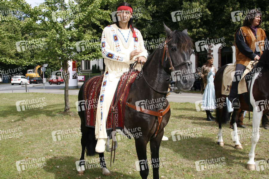 Das Ensemble der Karl-May-Spiele 2009 nimmt Ministerpräsident Wulff in den Kreis der Ehrenhäuptlinge auf. Dazu fanden sich die Mitwirkenden von 'Der Schatz im Silbersee' in der Niedersächsischen Staatskanzlei in Hannover ein.