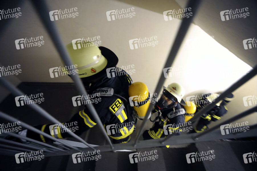Feuerwehr, Feuerwehrmann, Feuerwehrmänner, Atemschutz, Atemschutzausrüstung, Sport, Dienstsport, Feuerwehrsport, Stair, Stairrun, Run, Treppen, Treppenlauf, Wettkampf, Wettbewerb, Firefighter, Fire Brigade, Training, Schutzkleidung, Schutzausrüstung, Leistungssport, Anstrengung