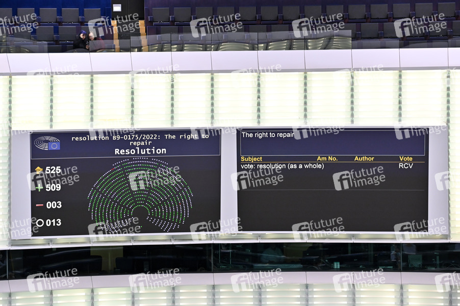 Abstimmung über Sanktionen gegen Russland im Plenarsaal des Europäischen Parlaments. Straßburg, 07.04.2022