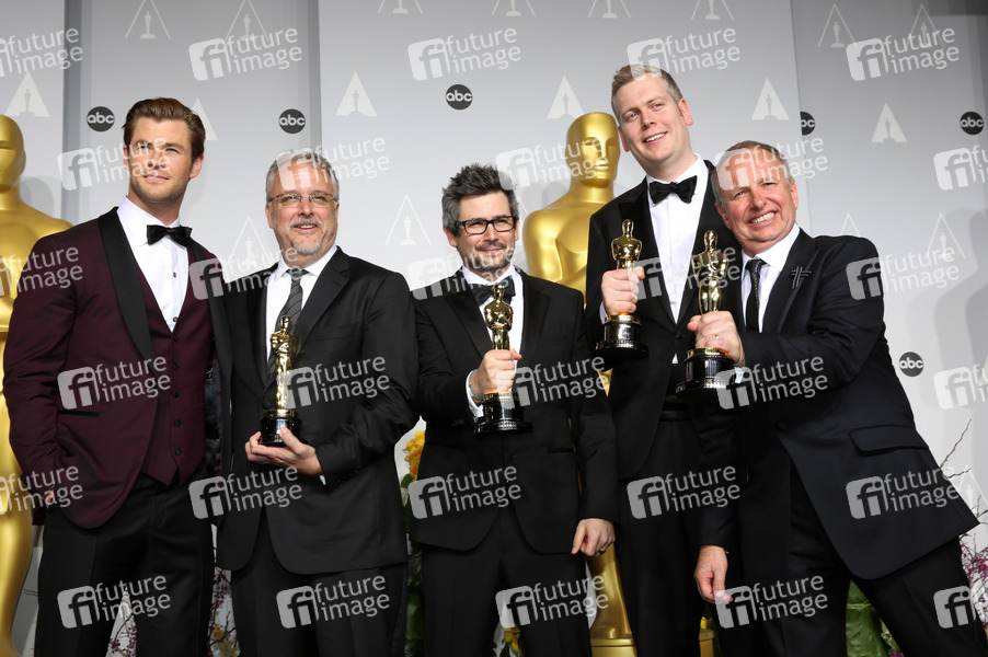 Chris Hemsworth mit Skip Lievsay, Niv Adiri, Christopher Benstead und Chris Munro mit Oscars für den besten Ton in 'Gravity' bei der Oscar Verleihung 2014 / 86th Academy Awards Preisverleihung im Dolby Theatre, Hollywood. Los Angeles, 02.03.2014