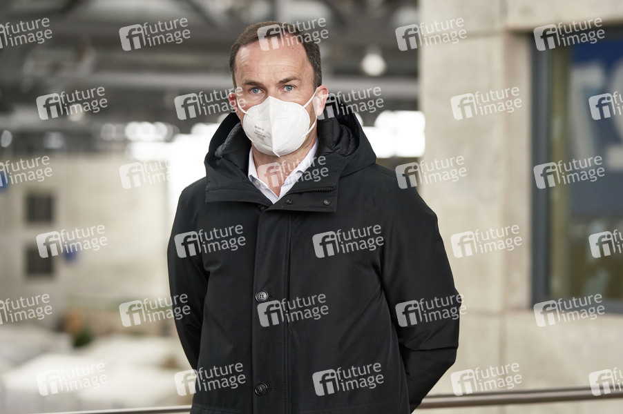 Jochen Köckler (Vorsitzender des Vorstandes der Deutschen Messe AG) - Zeltdörfer-Unterkünfte für ukrainische Kriegsflüchtlinge in der Halle 27 auf dem Messegelände, inklusive Wasch- und Duschmöglichkeiten, errichtet von der Feuerwehr Hannover. Die spätere Versorgung erfolgt durch das DRK. Hannover, 06.03.2022