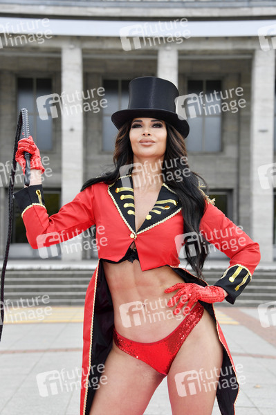 Micaela Schäfer bei der Generalprobe für das Opening der 27. Venus Berlin vor dem Haupteingang Nord der Messe Berlin. Berlin, 07.10.2024