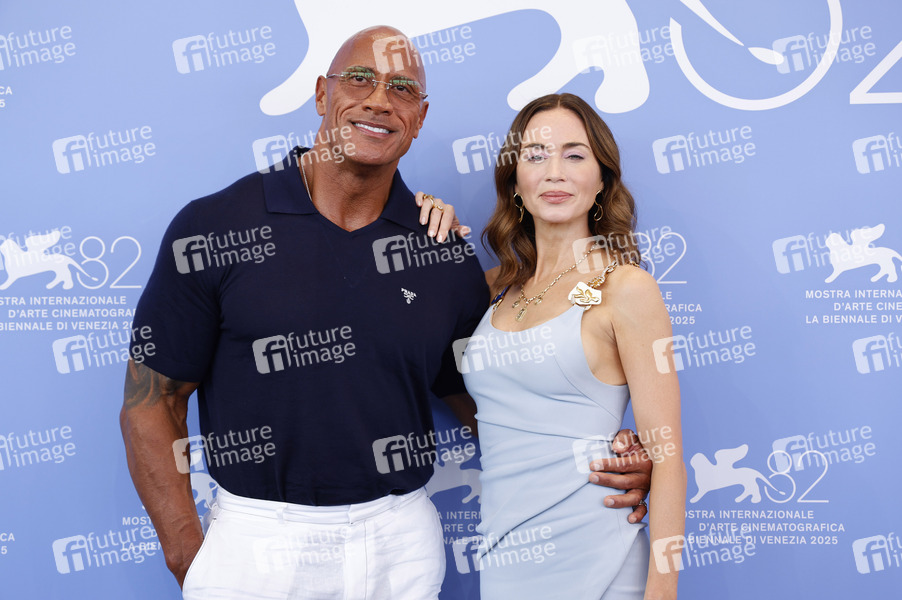 Dwayne Johnson und Emily Blunt beim Photocall zum Kinofilm 'The Smashing Machine' auf der Biennale di Venezia 2025 / 82. Internationale Filmfestspiele von Venedig im Palazzo del Casino. Venedig, 01.09.2025