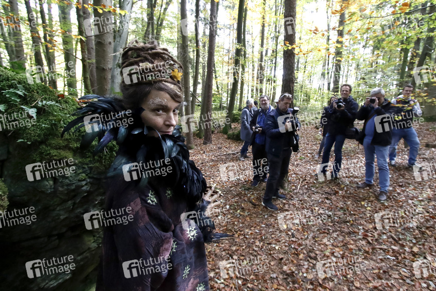 Jeanette Hain beim Fototermin am Set des Märchenfilms 'Der starke Hans' aus der ARD-Reihe 'Sechs auf einen Streich' im Druidenhain. Muggendorf, 17.10.2019