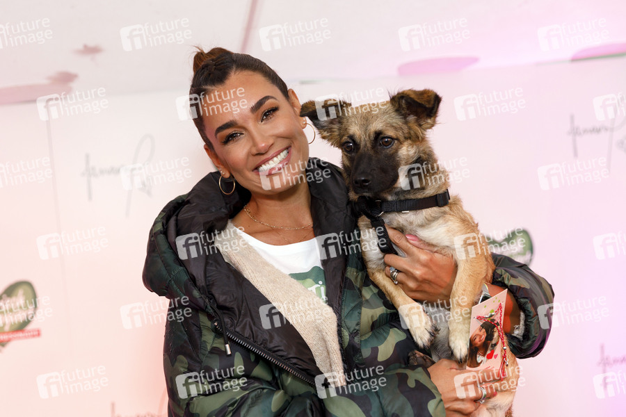 Jana Ina Zarrella mit Hund Cici beim Pressetermin zur Charity-Initinative 'Tierisch engagiert' unterstützt von Fressnapf im Tierheim Köln-Zollstock. Für die Aktion 'Freundschaft verbindet' hat sie ein Freundschaftsarmband designt, dessen Erlöse direkt an den Tierschutz und in tiertherapeutische Einrichtungen fließt. Köln, 29.09.2020