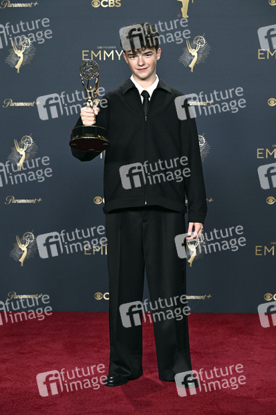 Owen Cooper mit dem Emmy für den besten Nebendarsteller in der Mini-Serie 'Adolescence' beim Preisträger-Photocall der 77. Primetime Emmy Awards 2025 im Peacock Theater. Los Angeles, 14.09.2025