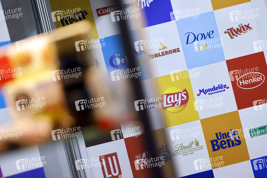Logos von Süßwarenmarken auf der Internationalen Süßwarenmesse ISM in der KoelnMesse. Köln, 30.01.2022