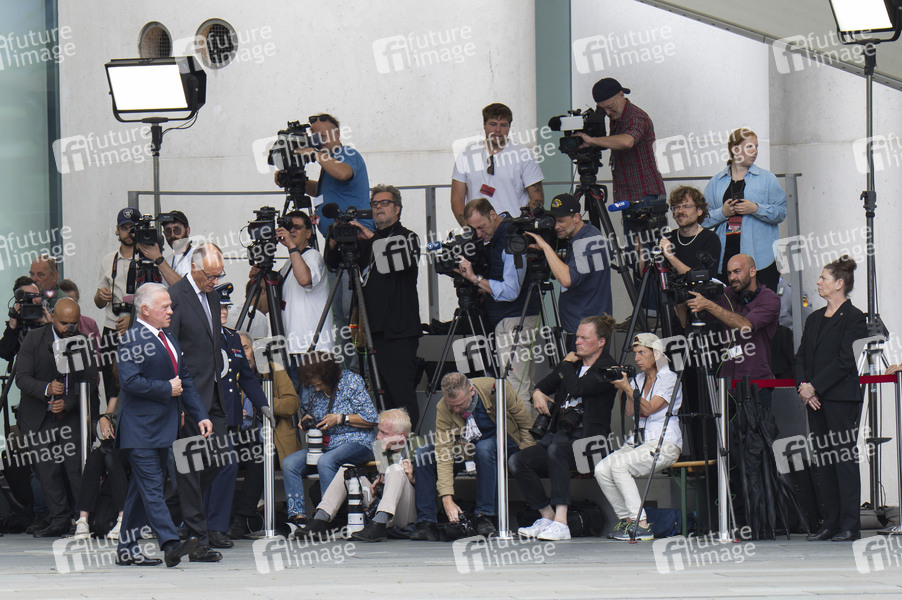 Abdullah II. bin al-Hussein und Friedrich Merz beim Empfang des Königs von Jordanien mit militärischen Ehren zu einem gemeinsamen Gespräch mit anschließendem Pressestatement im Bundeskanzleramt. Berlin, 29.07.2025
