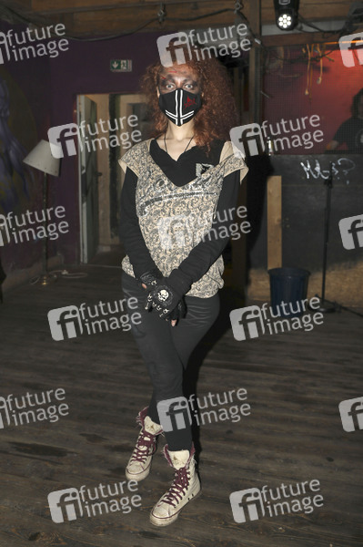 Die russische Black Metal Band Satarial mit Lolita, die als politisch vefolgt vor den letzten Wahlen in Rußland ihre Heimat verlassen musste und deren Bandmitglieder nun in Polen wohnen, bei einem Auftritt im Jugendkulturzentrum Basta. Görlitz, 15.10.2021