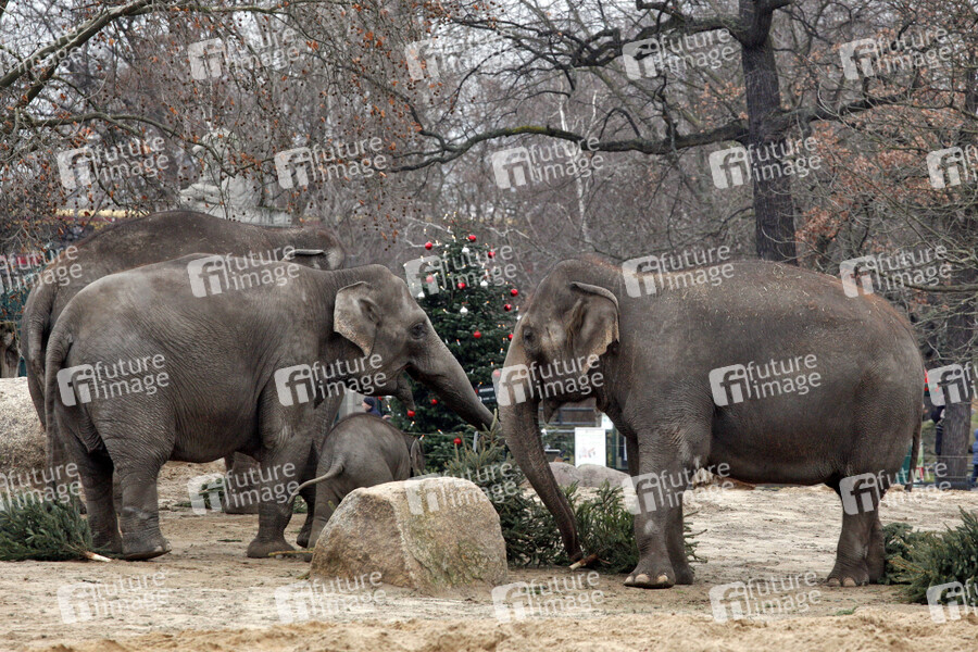 Tiere, Weihnachtsbaum, Christbaum, Tannenbaum, Tierpark, Zoo, Elefant