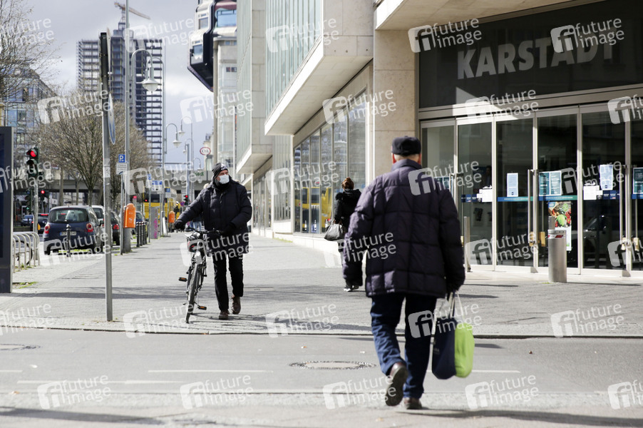Die Einkaufsmeile Schlosstraße in Berlin Steglitz am Samstag Mittag. Alle Geschäfte sind aufgrund der Coronakrise geschlossen. Die meisten Berliner halten sich offensichtlich an die Empfehlungen und Maßnahmen der Bundesregierung zur Bekämpfung der Corona-Epidemie. Berlin, 21.03.2020