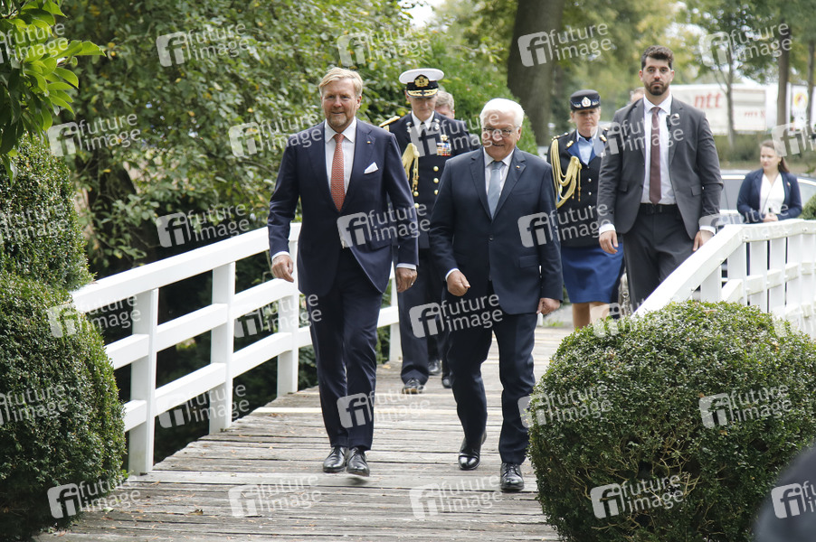 König Willem-Alexander der Niederlande und Frank-Walter Steinmeier bei der Begrüßung anlässlich von 30 Jahre Deutsch-Niederländisches Corps im Schloss Wilkinghege. Münster, 25.09.2025