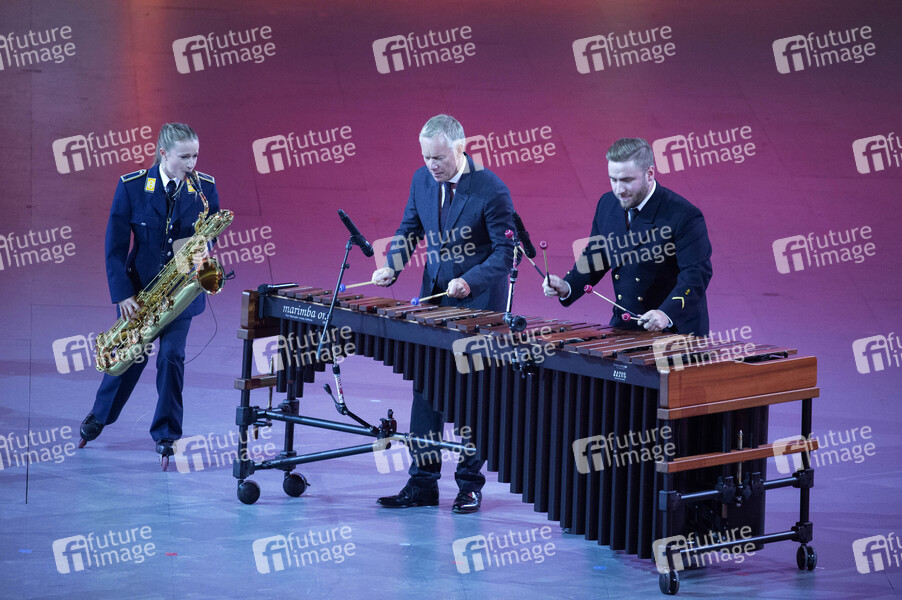 Musiker mit Johannes B. Kerner beim Musikfest der Bundeswehr, Internationales Militär Tattoo im ISS Dome. Düsseldorf, 21.09.2019