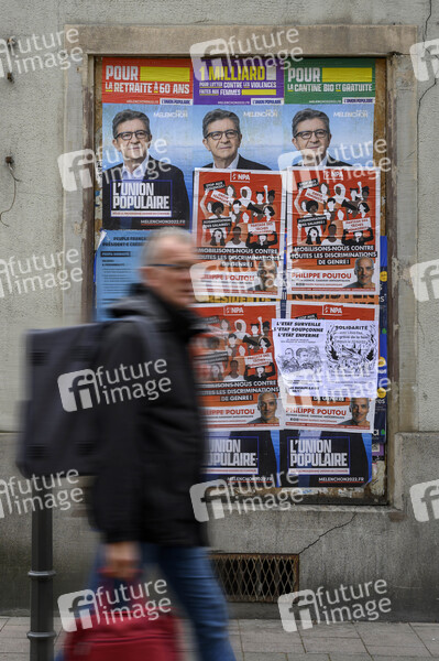 Election présidentielle française de 2022, Politik, Wahl, Wahlkampf, Partei, Parteienwerbung, Kampagne, Wahlen, Wahlkampagne, Kandidat, Politiker, Frankreich, Jean-Luc Mélenchon, La France insoumise, linkspopulistisch, Philippe Poutou, Nouveau Parti anticapitaliste, antikapitalistisch