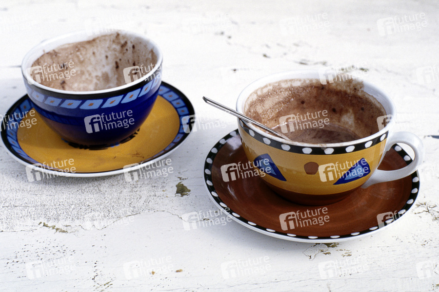 Zwei leere Tassen Schokolade