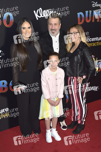 Izabel Araujo und Joey Fatone mit Töchtern Kloey Alexandra Fatone und Briahna Joely Fatone bei der Weltpremiere des Kinofilms 'Dumbo' im El Capitan Theatre. Los Angeles, 11.03.2019