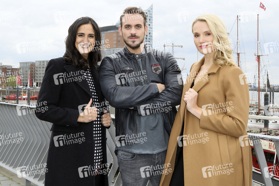 Aybi Era, Marc Barthel und Anna Hofbauer beim Fototermin am Set der ZDF TV-Serie 'Notruf Hafenkante - Die Pokerprinzessin' im City Sporthafen. Hamburg, 11.04.2019.