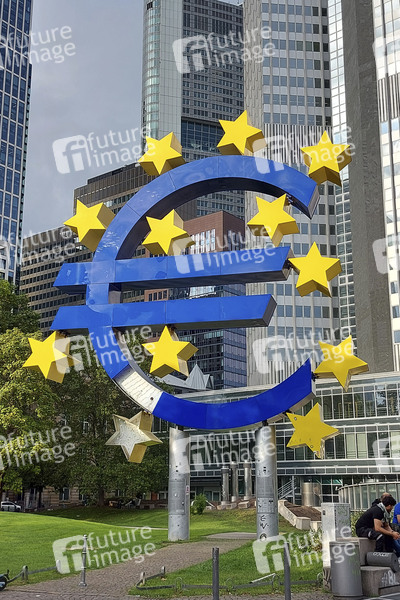 Symbolfoto Eurokrise - beschädigte Euro-Skulptur am Willy-Brandt-Platz. Frankfurt, 08.09.2021