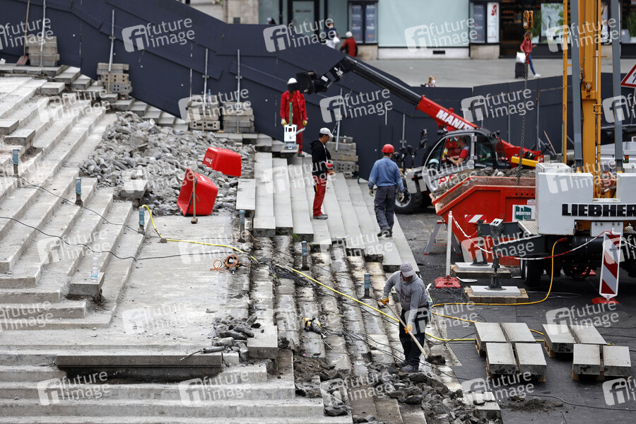 Granit, Stufen, Treppe, Meißeln, Sanierung, Sanierungsfall, Freitreppe, Domtreppe, kaputt, Bauen, Bauarbeiten, Kölner Wahrzeichen, Generalsanierung, Kölner Baustellen, Baukosten, Sanieren, Steintreppe, Großbaustelle, Millionen-Kosten, Pfusch am Bau, Menschenaufkommen, Verschleiß, Baubeschluss, Regressansprüche, Passanten, Reparatur, Reparaturen, Bauzaun, Bausicherheit, Baubranche, Baulärm