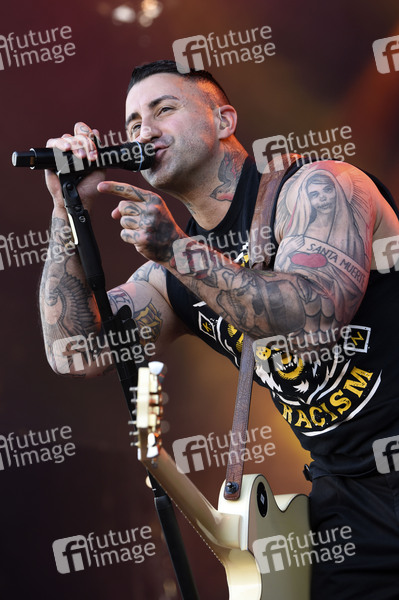 Sammy Amara von den Broilers live beim Ruhrpott Rodeo Festival auf dem Freigelände am Flughafen Schwarze Heide. Hünxe, 03.07.2022