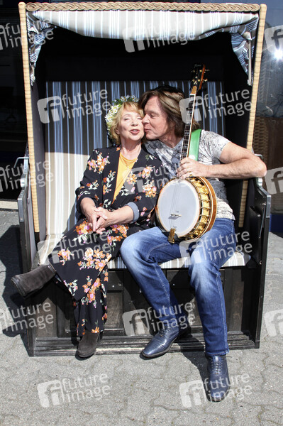 Madeleine Lierck–Wien und Jürgen Drews beim Fototermin am Set der ARD TV-Serie 'Rote Rosen' in den Rote Rosen-Studios. Lüneburg, 17.04.2019