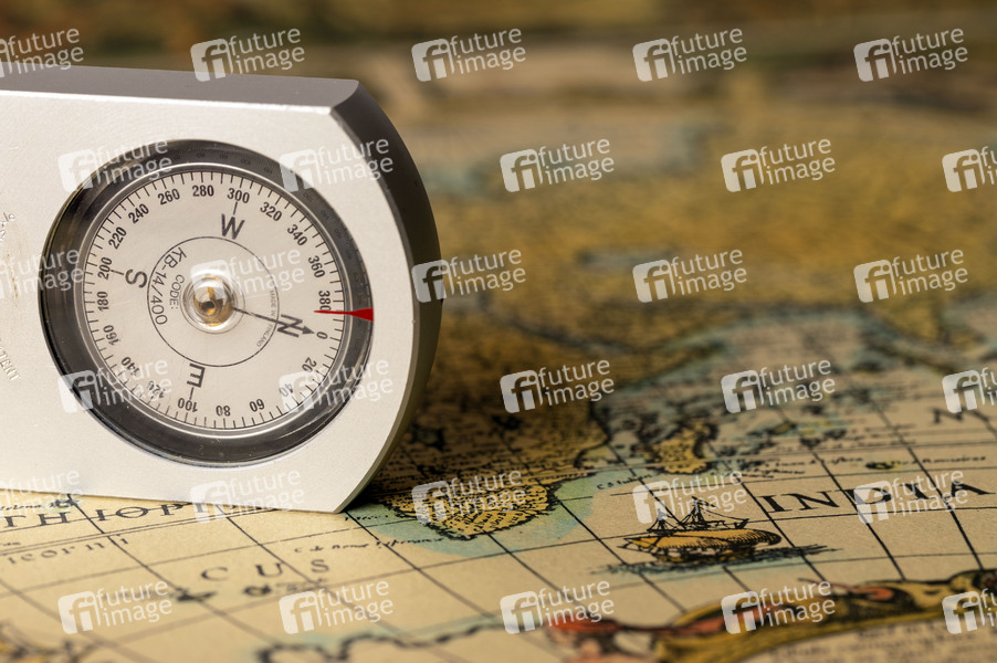 Unter Seefahrt versteht man das Befahren von Ozeanen und Meeren mit Schiffen und Booten. Im Bild ein Kompass auf einer historischen Seekarte. (Symbolfoto, Themenfoto)
