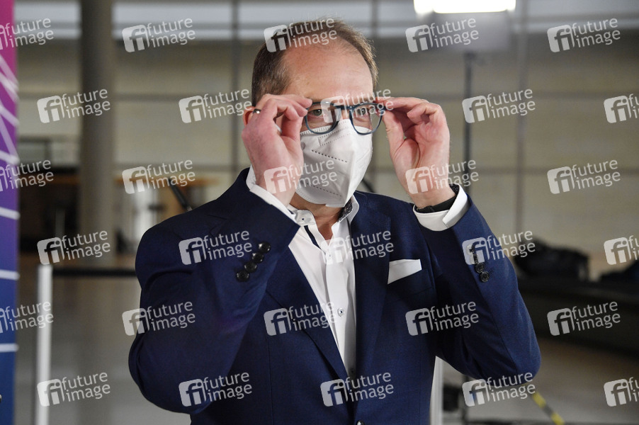Alexander Dobrindt bei einem Pressestatement der CDU/CSU-Bundestagsfraktion vor der Fraktionssitzung auf der Fraktionsebene im Reichstagsgebäude. Berlin, 13.04.2021