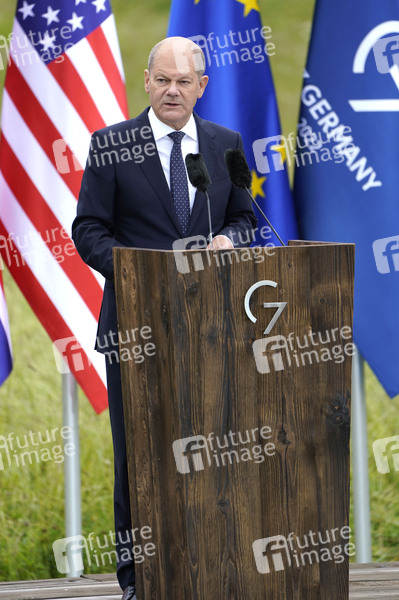 Olaf Scholz bei der Abschlusspressekonferenz zum G7-Gipfel auf Schloss Elmau. Klais, 28.06..2022