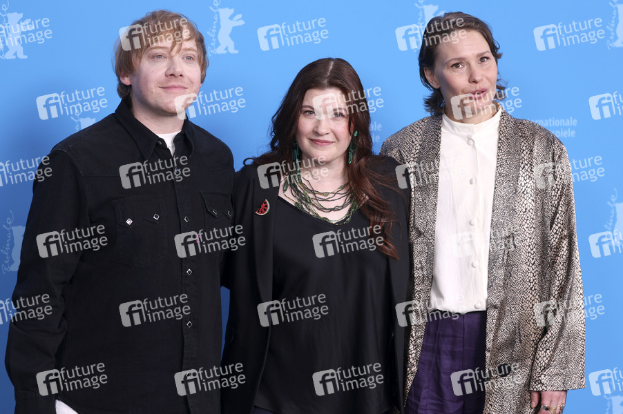 Rupert Grint, Hanna Bergholm und Seidi Haarla beim Photocall zum Kinofilm 'Yön lapsi / Nightborn' auf der Berlinale 2026 / 76. Internationale Filmfestspiele Berlin im Hotel Grand Hyatt. Berlin, 14.02.2026
