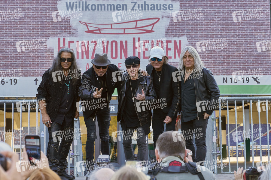 Pawel Maciwoda, Rudolf Schenker, Klaus Meine, Matthias Jabs und Mikkey Dee von den Scorpions beim Photocall anlässlich ihres 'Coming Home'-Konzerts zum 60-jährigen Bandjubiläum am 5.Juli 2025 in der Heinz von Heiden Arena. Hannover, 24.10.2024