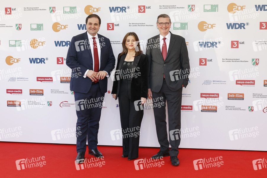 Nathanael Liminski, Cigdem Uzunoglu und Martin Rabanus bei der 61. Verleihung des Grimme Preises 2025 im Theater Marl. Marl, 04.04.2025