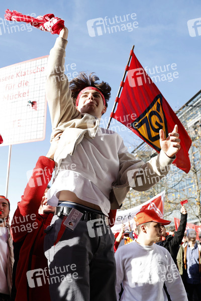 Demonstration, Demonstranten, Demo, Kundgebung, Protest, Aktion, Banner, Parolen, Tarifverhandlungen, IGM, IG Metall, Warnstreiktag, Arbeit, Benachteiligung, Gehalt, Gehälter, Arbeitsbedingungen, Fachkräfte, finanzielle Anerkennung, Tarifstreit, Lohn, Löhne, Metaller, Tarif-Kundgebung, Tarifrunde, Warnstreikwelle, Arbeitsniederlegung, Audi, Lohnstreit