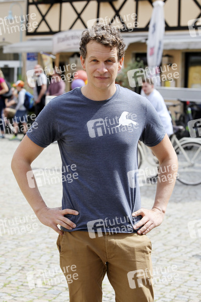 Sebastian Kaufmane am Set des ARD-Fernsehfilms 'Der Ranger - Paradies Heimat' auf dem Marktplatz. Stadt Wehlen, 14.08.2019