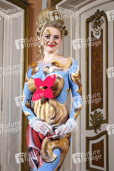 Barock Bodypainting mit Model Daniela im Schloss Hasperde. Hasperde, 25.02.2014 - Body Paint Künstler: Jörg Düsterwald, Frisur und Make-up: Janina Horstmann