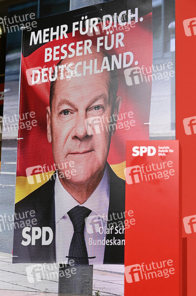 Wahlplakat bei der Pressekonferenz zum Beschluss des SPD-Wahlprogramms für die Bundestagswahl 2025 im Willy-Brandt-Haus. Berlin, 17.12.2024