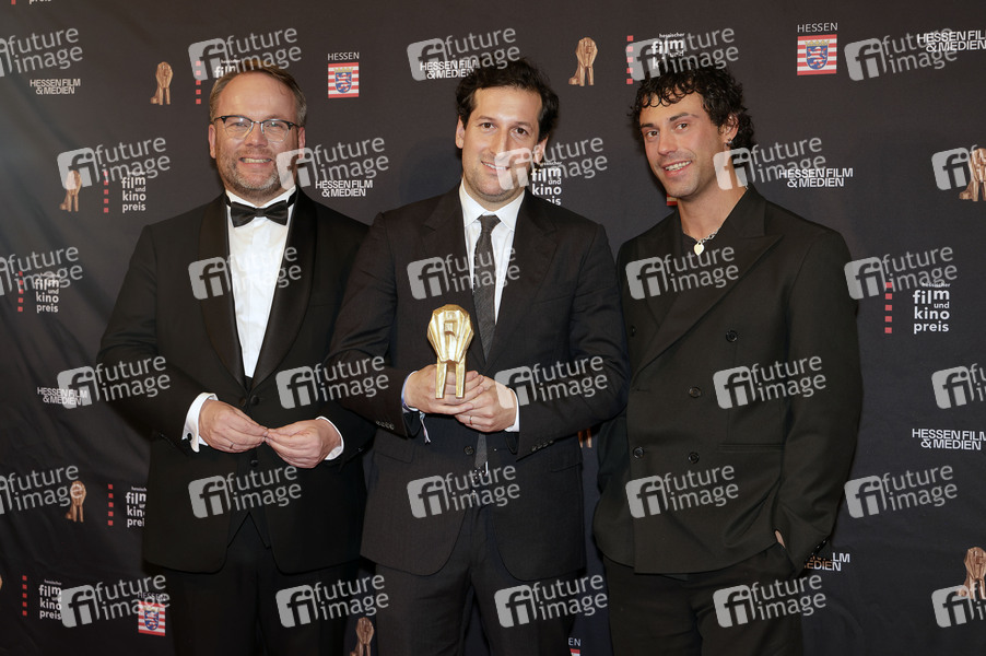 Timon Gremmels, David Hadda und Aaron Altaras bei der 35. Verleihung des Hessischen Film- und Kinopreises 2024 in der Alten Oper. Frankfurt am Main, 18.10.2024