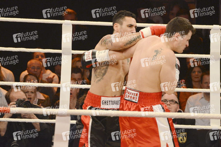 B-Tight Davis vs. Rocco Stark bei der Fernsehshow 'Das große Sat.1 Promiboxen 2013' im Castello. Düsseldorf, 08.03.2013