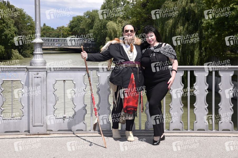 Willy Michl mit Ehefrau Cora beim Pressetermin zum Konzert von Willy Michl zu seinem 70. Geburtstag im Rahmen des Eulenspiegel Flying Circus im Innenhof des Deutschen Museums. München, 02.07.2020