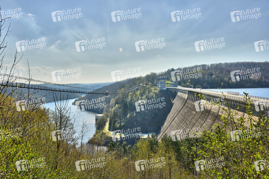 Rappbodetalsperre und 483 m lange Fußgängerhängebrücke Titan RT im Landkreis Harz. Hasselfelde, 08.05.2021