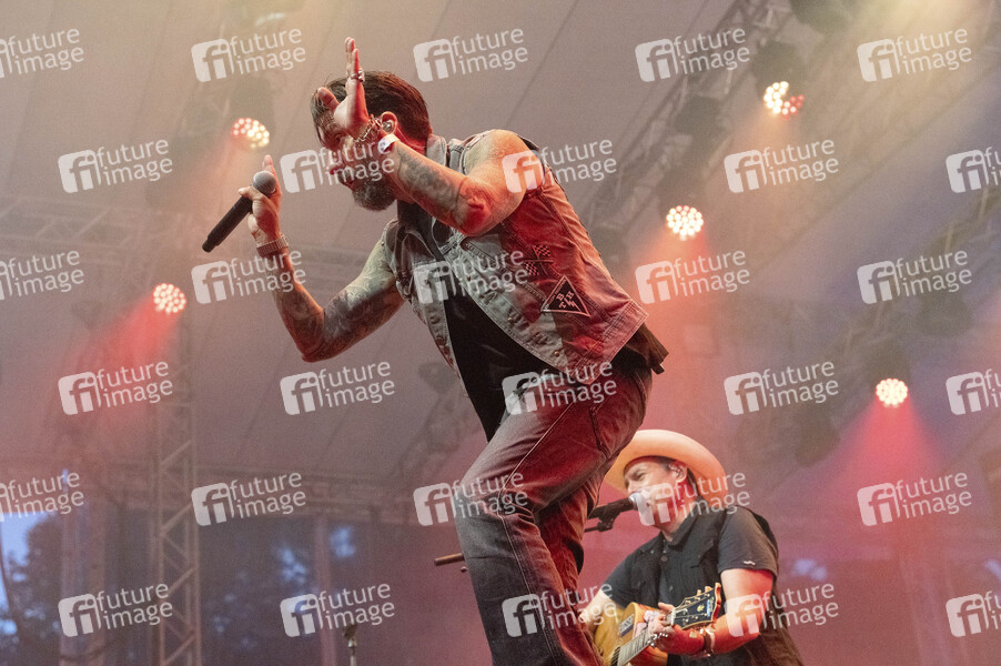Alec Völkel und Sascha Vollmer von The BossHoss live beim beim Bürgerfest des Bundespräsidenten mit Gastland Portugal und 4.000 geladenen Ehrenamtlichen im Park vom Schloss Bellevue. Berlin, 12.09.2025