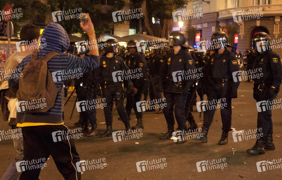 Politik, Demonstration, Ausschreitungen, Polizei, Polizisten, Demonstranten, Madrid, Europa, Sparmaßnahmen, Krise, Finanzkrise, Wirtschaftskrise