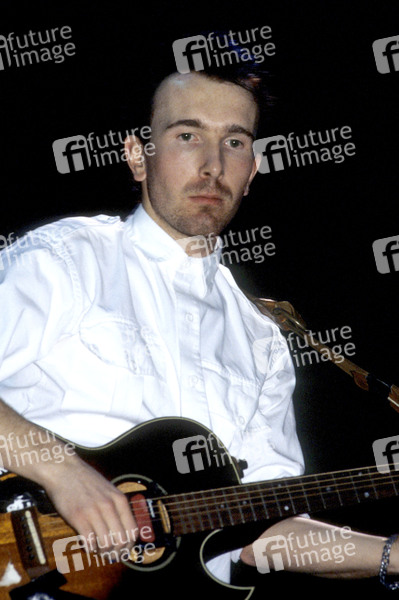 The Edge von U2 live bei einem Konzert der 'The Unforgettable Fire'-Tour in der Wembley Arena. London, 14.11.1984