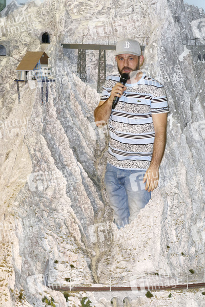 Das Bo bei der Präsentation des offiziellen Musikvideos von Das Bo zur Fussball WM mit einem Liveauftritt im Modell von der Schweiz im Miniaturwunderland. Hamburg, 27.05.2014