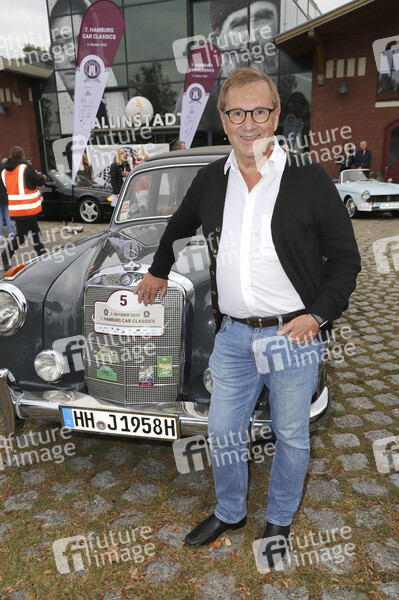 Jan Hofer bei der Ankunft der 7. Hamburg Car Classics Rallye in der Ballinstadt. Hamburg, 03.10.2020