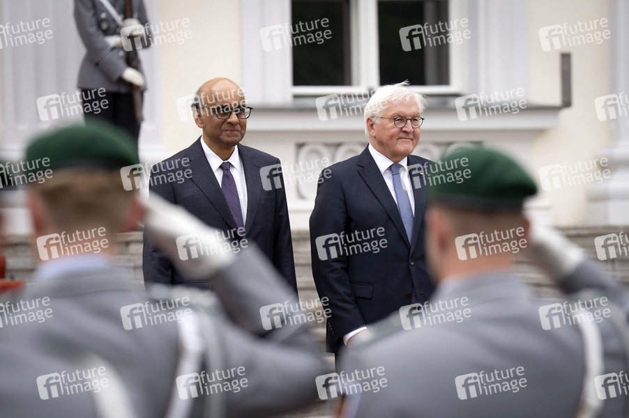 Tharman Shanmugaratnam und Frank-Walter Steinmeier beim Empfang des Präsidenten von Singapur mit militärischen Ehren im Schloss Bellevue. Berlin, 04.06.2025