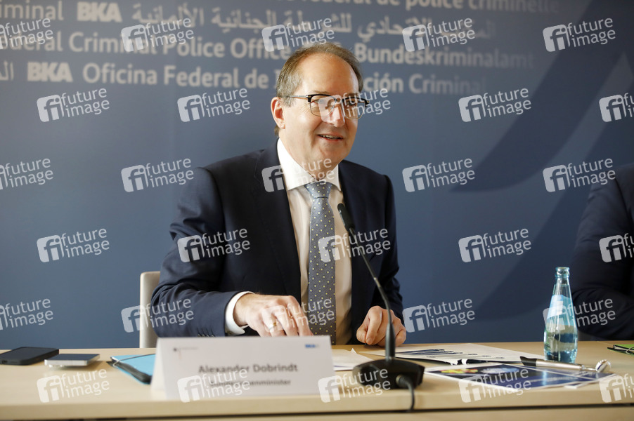 Alexander Dobrindt bei der Pressekonferenz 'Bundeslagebilder Organisierte Kriminalität und Rauschgift' im Bundeskriminalamt. Wiesbaden, 24.10.2025