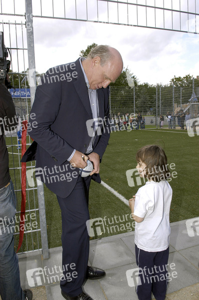 Eröffnung des Kinderspiel- und Bolzplatzes in der Mühlenstrasse in Pankow mit Dieter Hoeneß und Bürgermeister Matthias Höhne